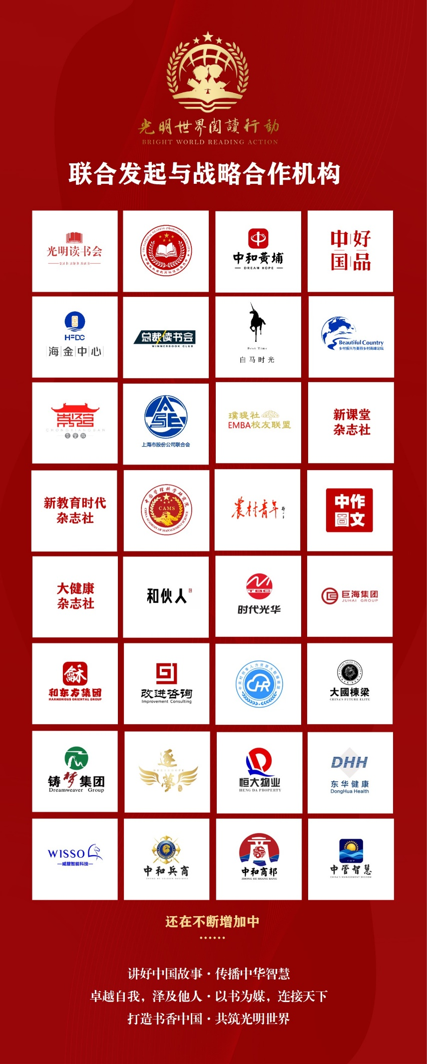 欢迎有志于参与阅读推广的机构、企业家莅临,携手同行,一起讲好中国故事,传播中华智慧,卓越自我,泽及他人,以书为媒,连接天下,打造书香中国,共筑光明世界。